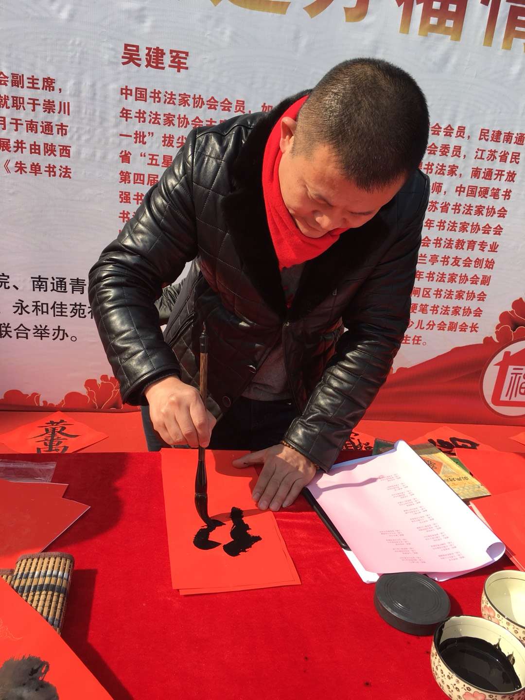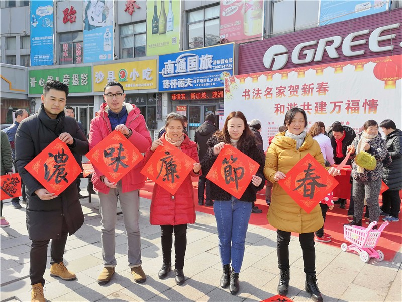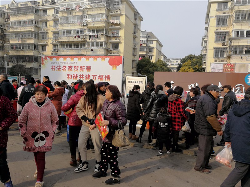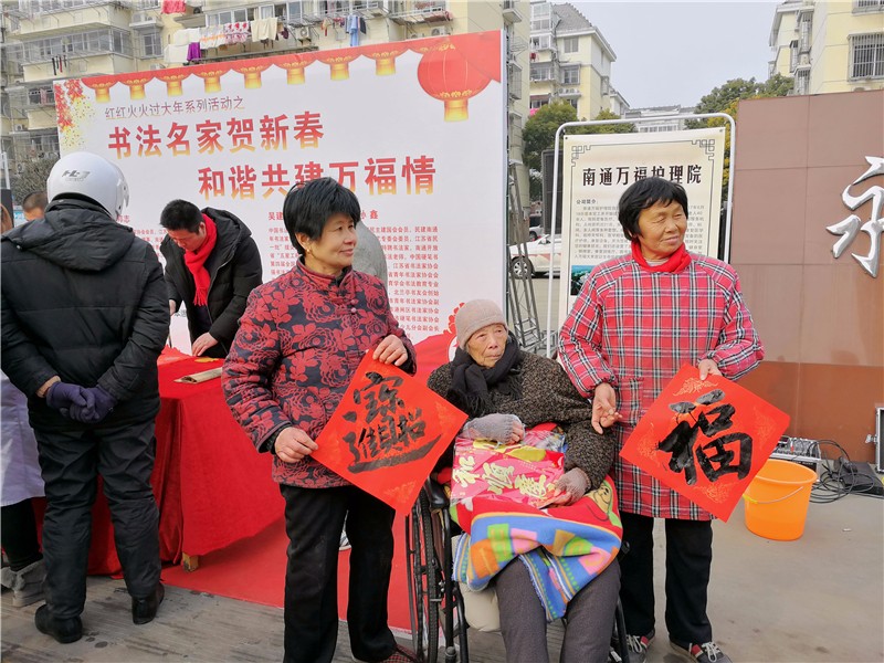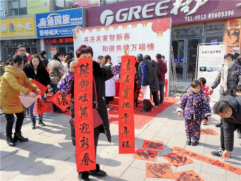 来自南通青年书法家协会的吴邦志先生、朱单女士、吴建军先生以及孙鑫先生现场挥毫泼墨,笔走龙蛇,行书,楷书,隶书等多种字体各显神韵,为社区居民送上了新年最美好的祝福。